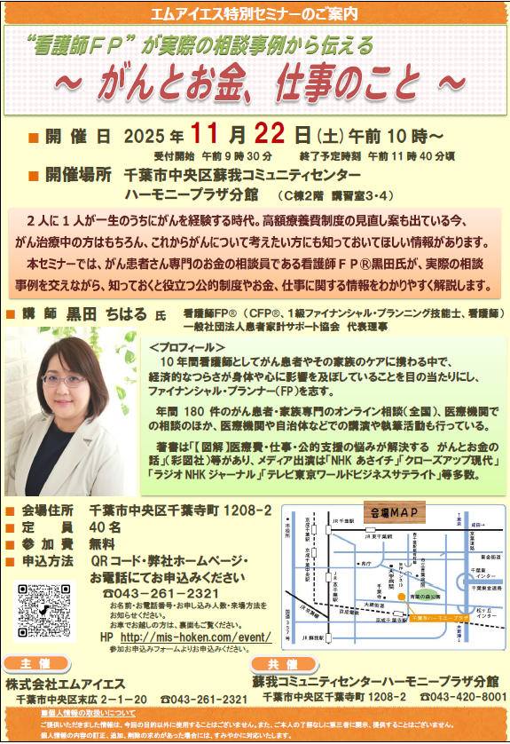 《セミナーのご案内》 ❝看護師FP❞が実際の相談事例から伝える ~がんとお金、仕事のこと~