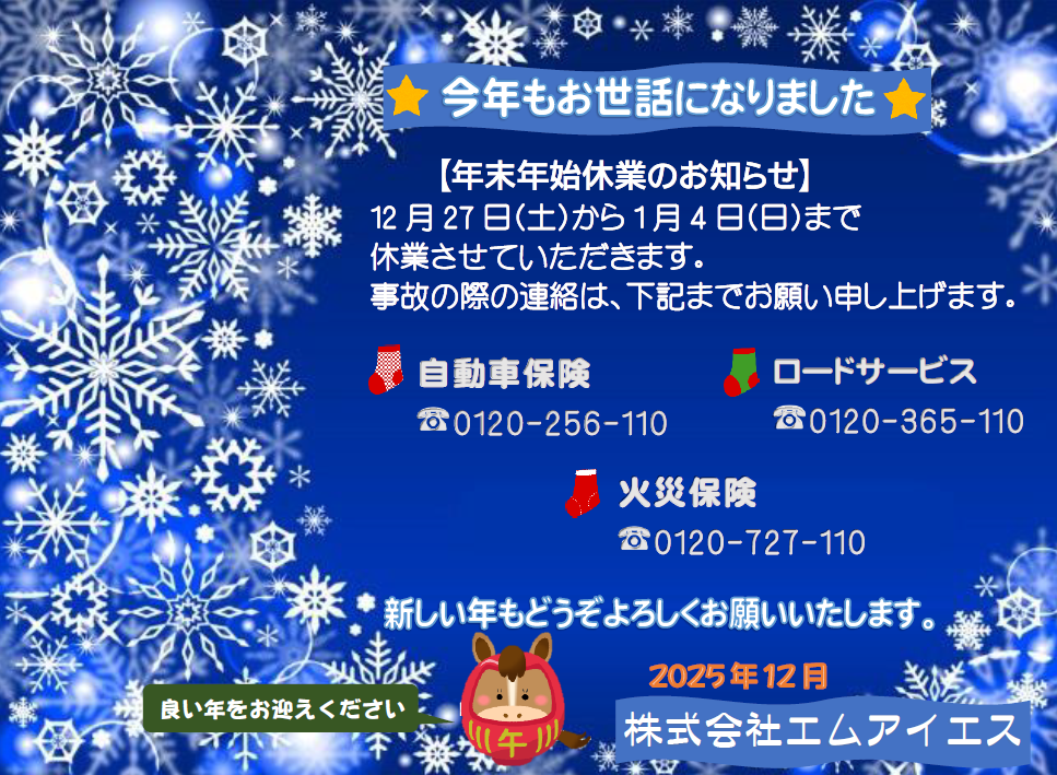 皆様お体にお気を付けて、よいお年をお迎えください。